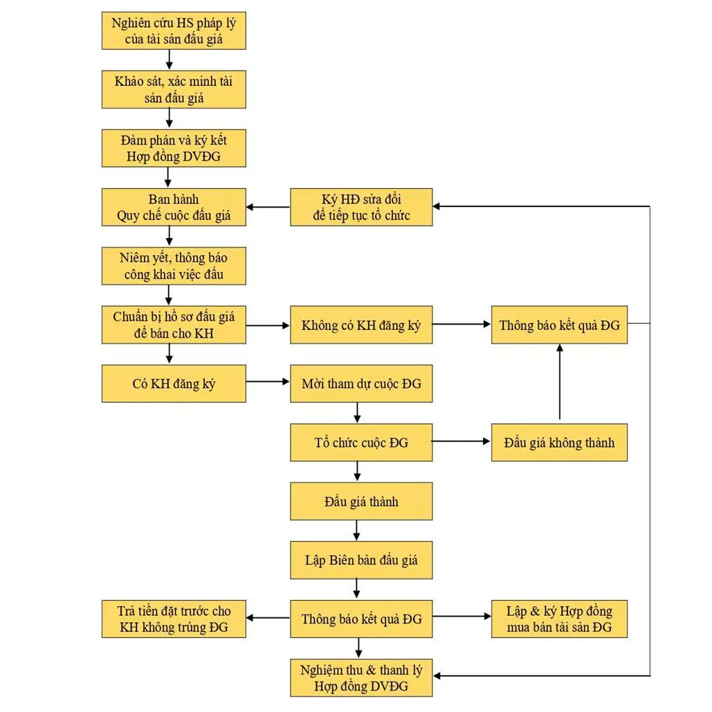 Sơ đồ quy trình tổ chức việc đấu giá tài sản của Công ty gồm các bước cơ bản sau: